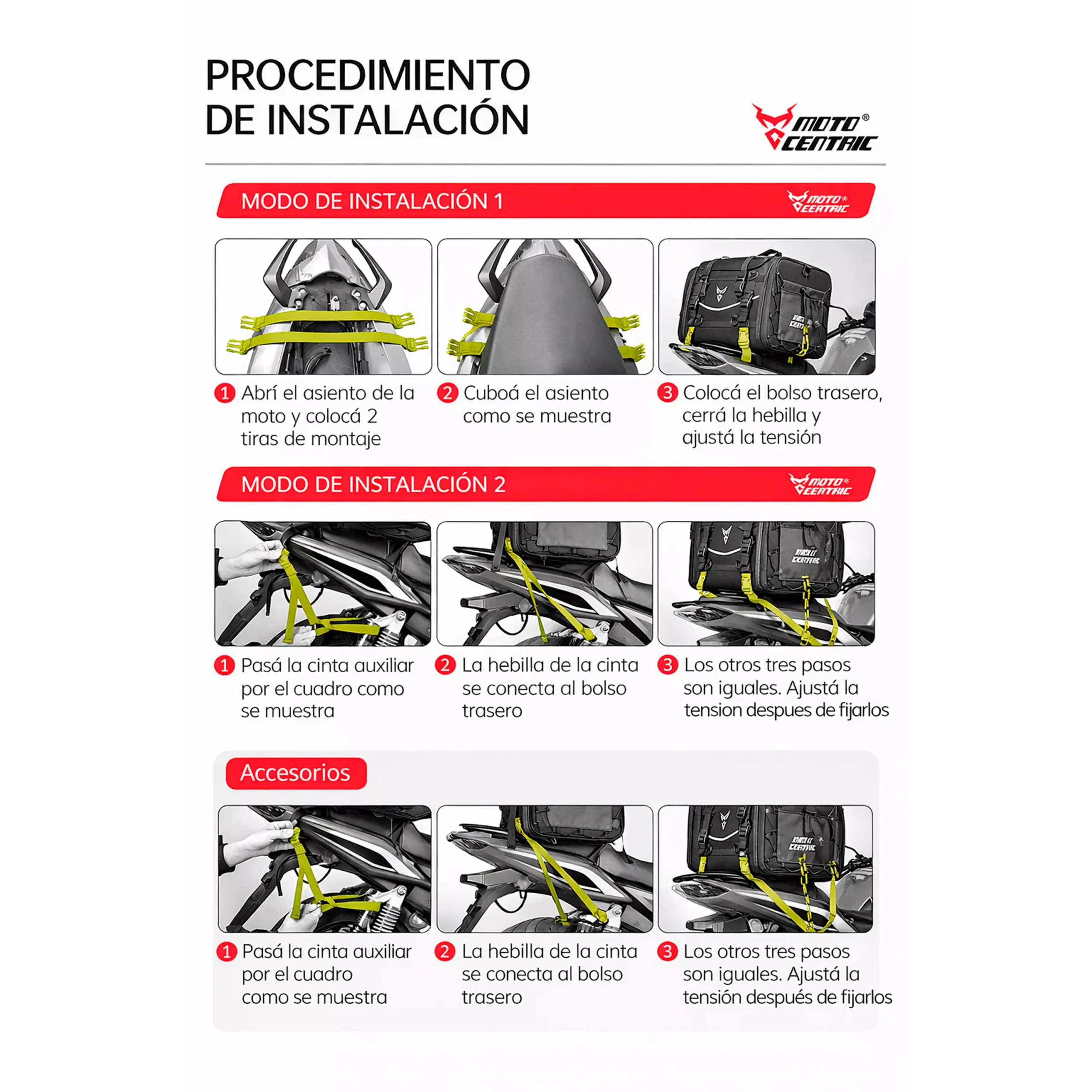 •  Correas ajustables y sistema de anclaje seguro para moto