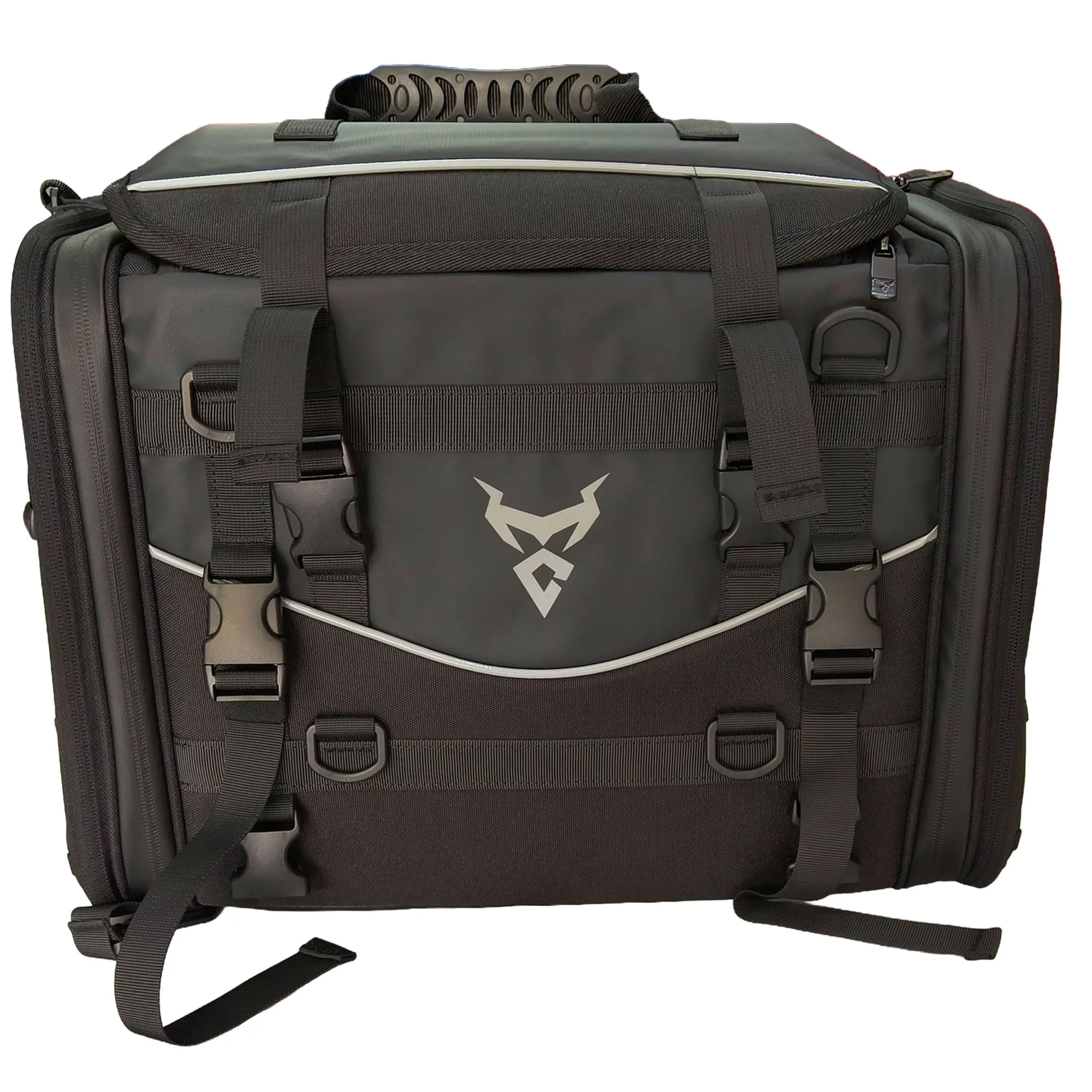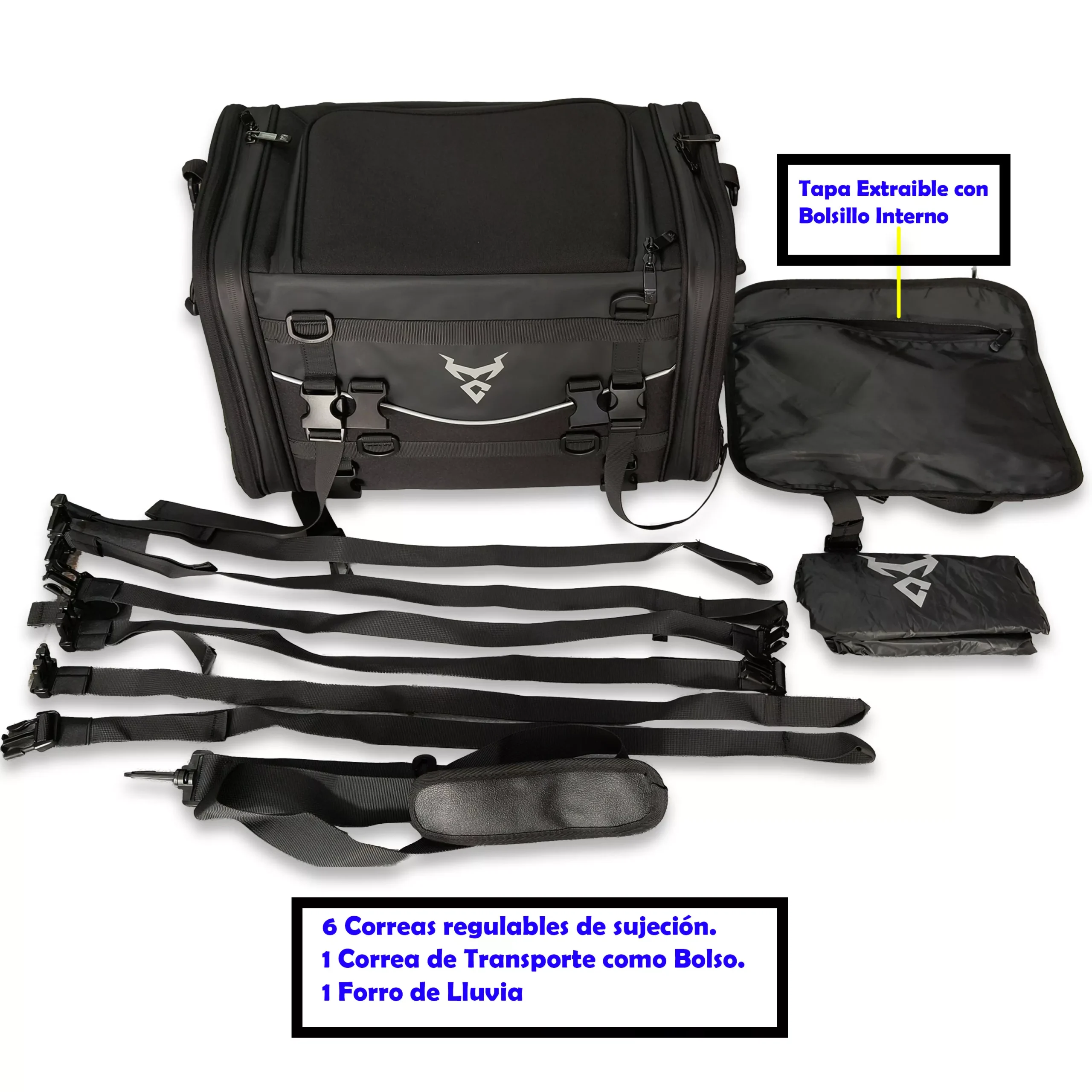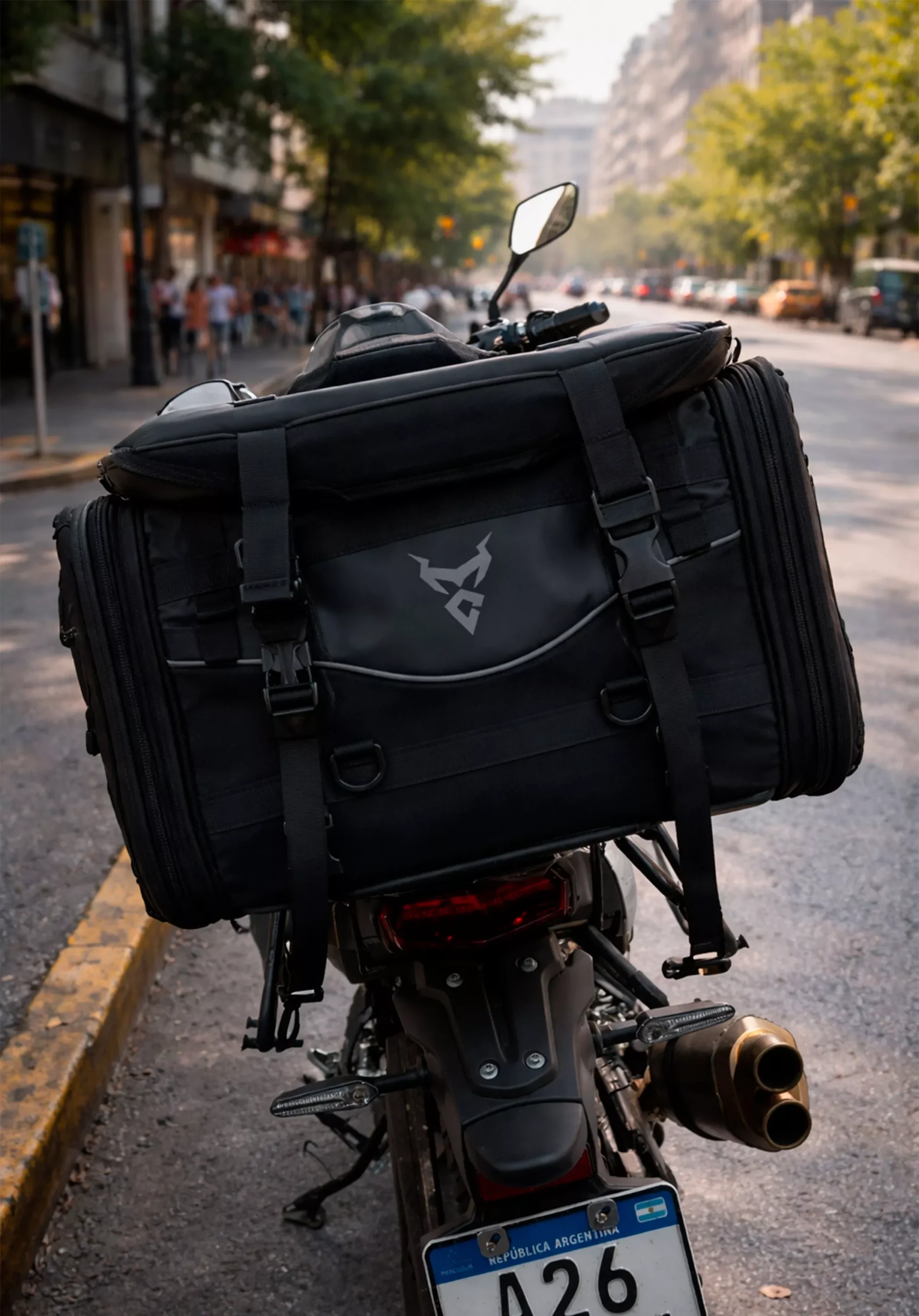 Bolso trasero para moto de gran capacidad, ideal para viajes largos, uso diario o touring. Fabricado con materiales resistentes al agua y al desgaste, ofrece excelente espacio de carga con sistema expandible y múltiples puntos de sujeción para mayor seguridad en ruta.